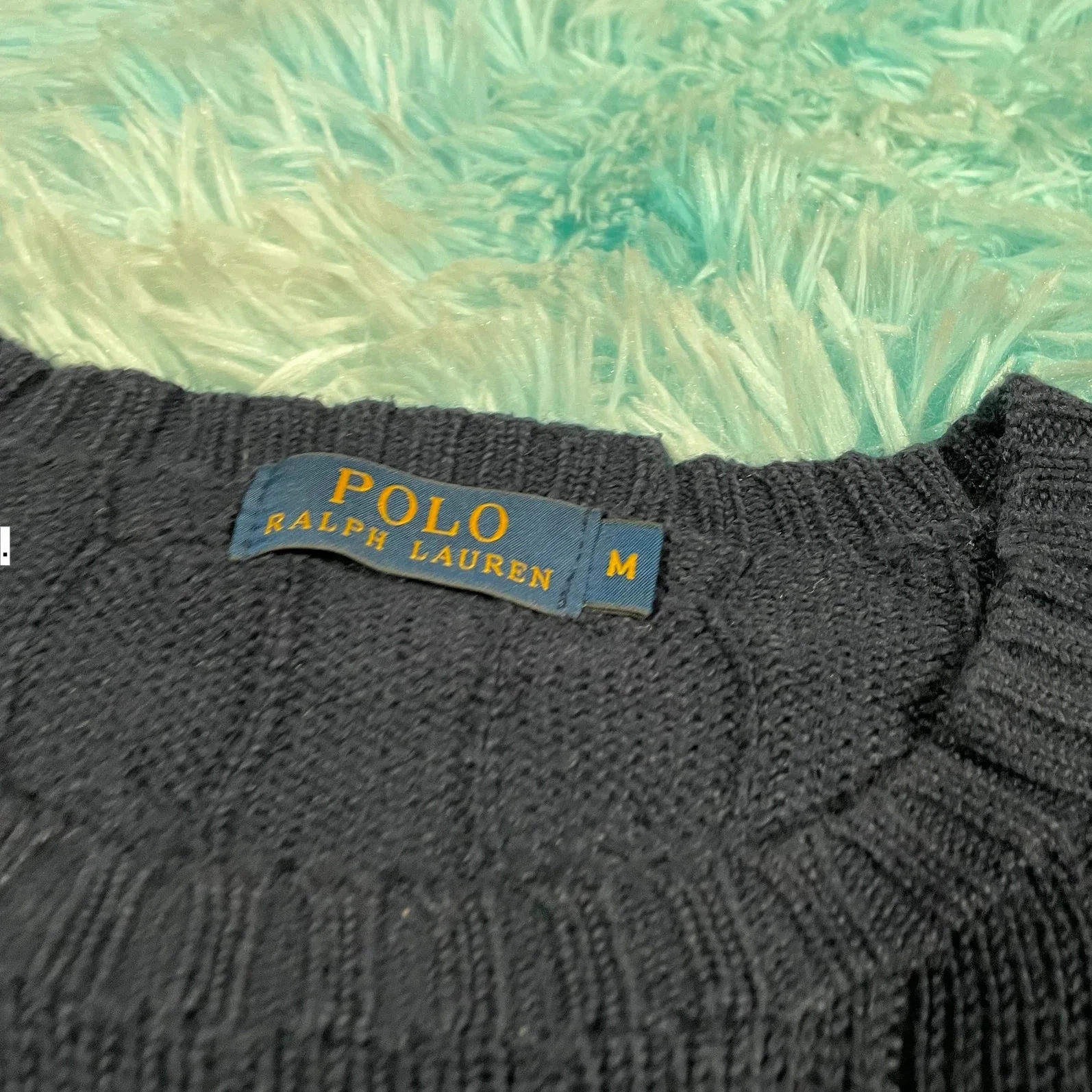 Navy polo Ralph Lauren Cable Knit Jumper - Medium