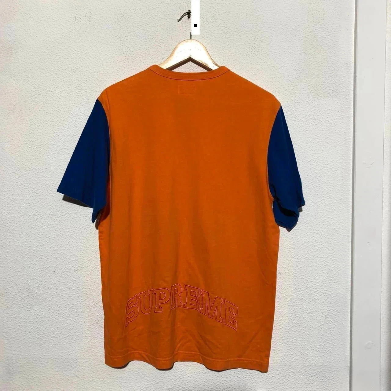 Orange & Blue Supreme T Shirt Henley Embroidered Spellout - Medium Excellent condition Medium Message with any questions Free shipping on bundles
