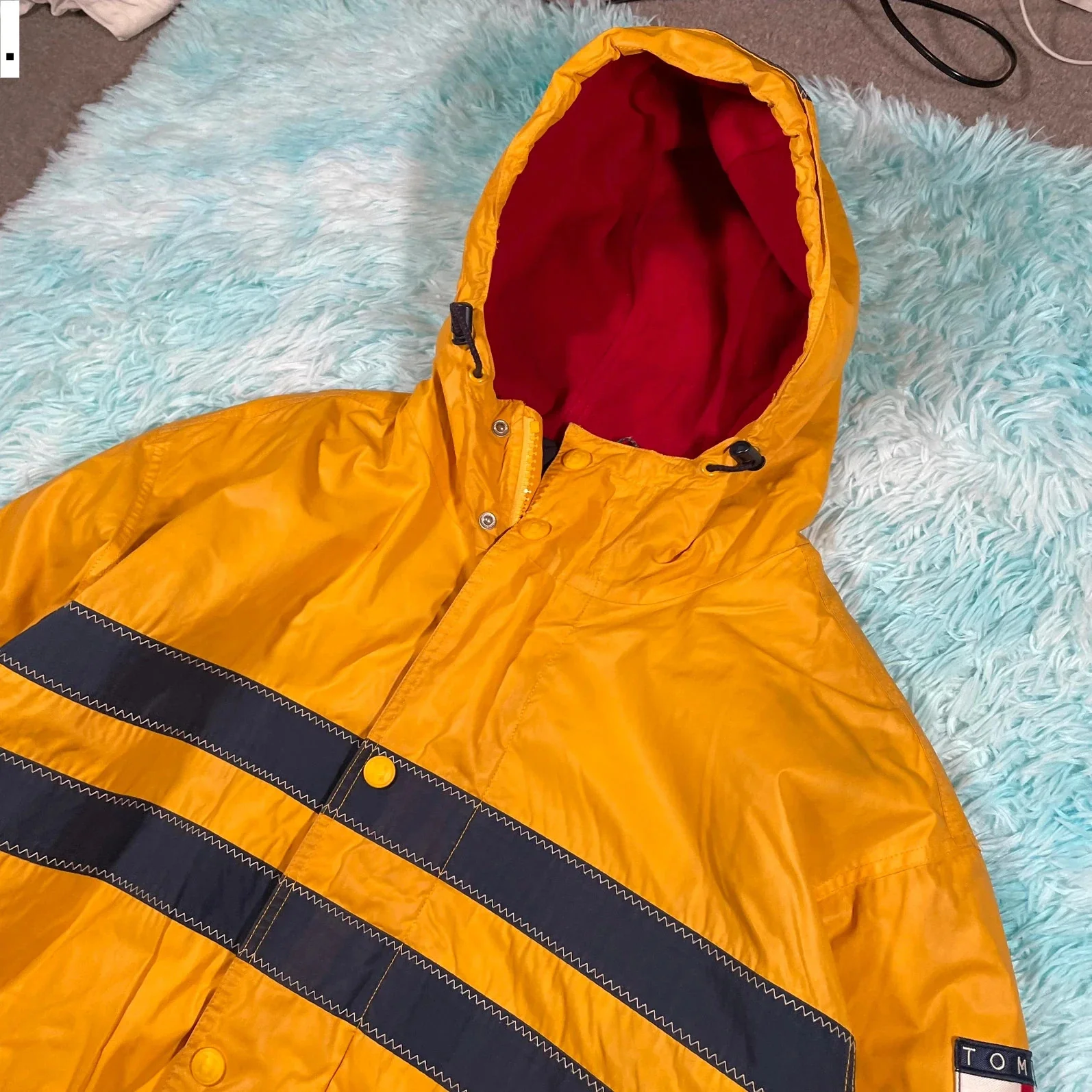 Vintage 90s Tommy Hilfiger Raincoat Jacket Embroidered Spellout - Large